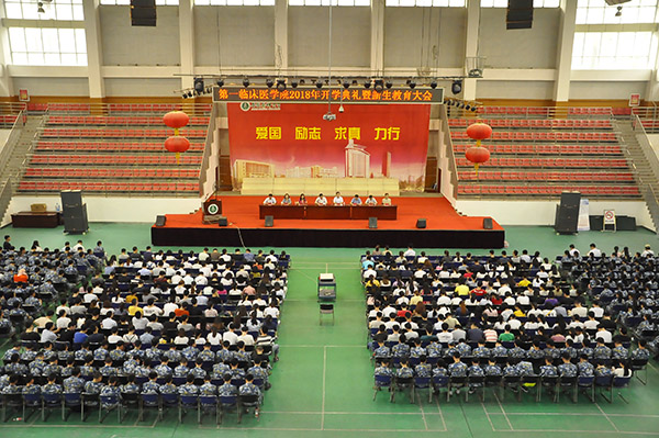 该院党委副书记、学生党总支书记杨秀兰主持典礼。全体2018级博士研究生、硕士研究生、本科生1233人参会。(第一临床医学院 余劲松 胡军林)