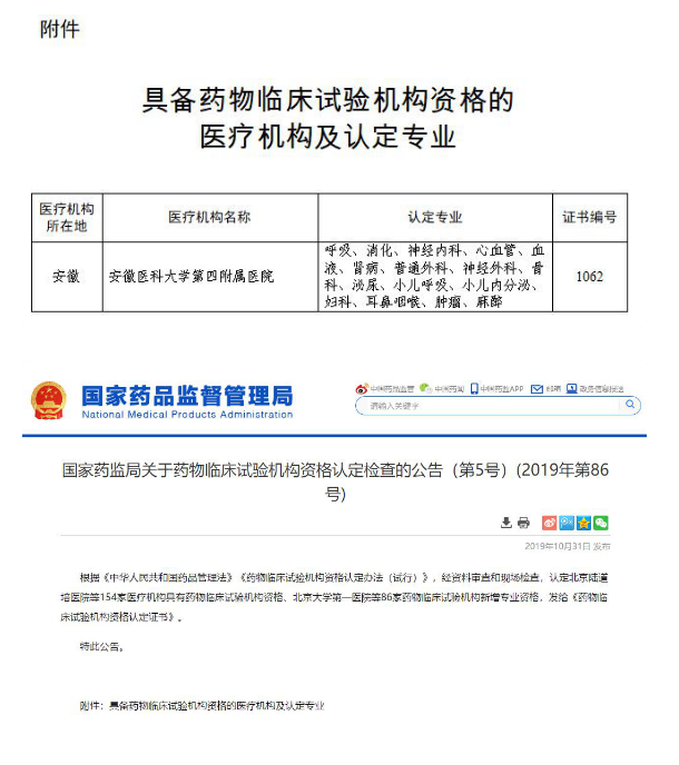 近日,安医大四附院被认定具有国家药物临床试验机构资格,在该院就诊的患者有望第一时间免费使用国内外最新研发的治疗药物。