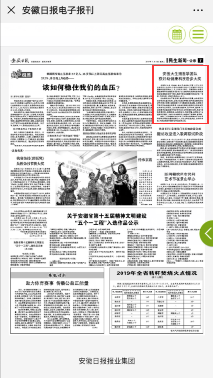 安徽日报:安医大生殖医学团队 获妇幼健康科技进步大奖