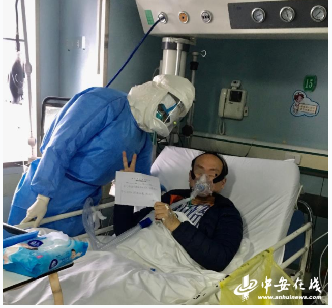 刚开始的时候,患者情况很不好:上了无创呼吸机,还是呼吸急促,动一下就会感觉闷。金长雨每天都给他打气加油,告诉他今天全国又有多少例患者康复出院,只要坚持不放弃,一定能走出这里,恢复健康!
