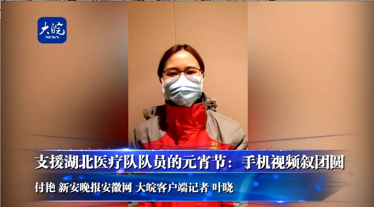 元宵节,一家人团聚,阖家欢乐。安徽支援湖北医疗队队员们仍身着“战衣”,奋战在抗疫一线。 平凡的日子,因为每一个感动瞬间而起舞生色,无数个像她们一样的家庭,逆行奔赴在防疫一线,虽然家里的烟火离他们很远,但看到万家灯火的时候,她们感到平安已经越来越近了。(付艳 新安晚报安徽网 大皖客户端记者 叶晓)
