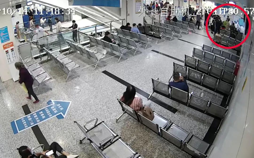 据悉,视频画面中在推车上为病人实施心肺复苏的医生是安医大一附院护理部的护师程旭。而当天,也恰好是她的28岁生日,在争分夺秒的抢救中,程旭度过了一个分外紧张而非凡的生日,事后程旭称这个生日特别有意义。图为女子倒地停止呼吸。