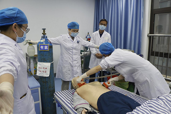 台上一分钟,台下十年功。从2021年1月8日起,教育科就抽调内、外、妇、儿、急诊、影像、护理等组的优秀老师们对五名学生开始了高强度的培训。教育科科长朱立雨介绍说:“选拔培训老师是项非常重要的环节,因为老师必须技术精、师德高、肯奉献、能吃苦,才能教好学生。”早上7:30到11:30,下午2:00到7:00。除了睡觉和吃饭的时间,老师和同学们都学习和训练在一起,日复一日,每日如此,没有假期。