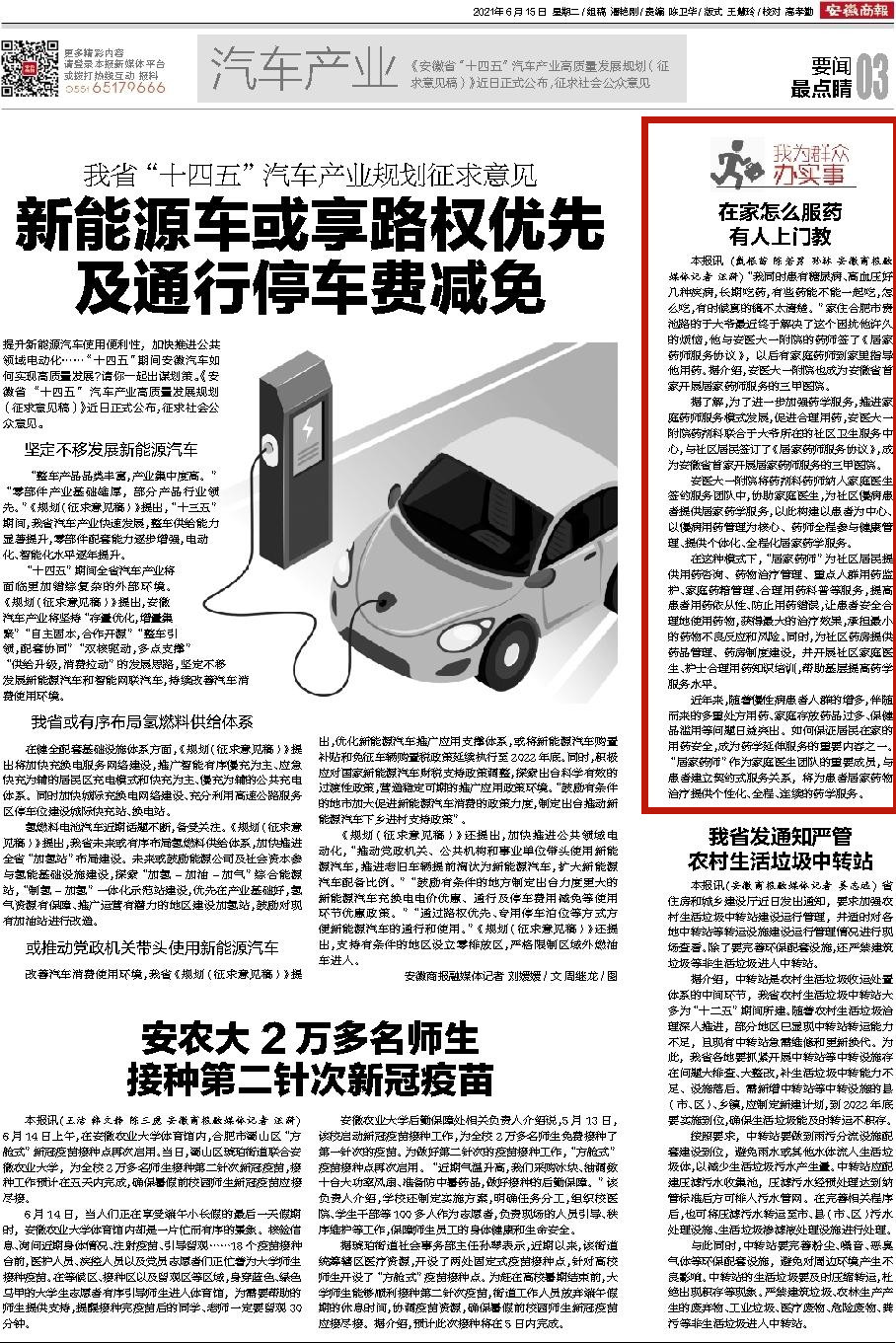 安徽商报:在家怎么服药 有人上门教