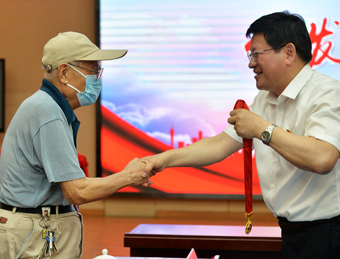 在认真聆听老党员饱含深情的发言后,顾家山指出,广大老党员在党的领导下,呕心沥血、忘我工作,在革命、建设和改革的各个历史时期作出了重要贡献,为学校的建设和发展贡献了重要力量。在中国共产党成立100周年之际,向老党员发放“光荣在党50年”纪念章,是对坚守立德树人初心、为学校事业发展做出突出贡献的老党员、老前辈的一次集中致敬,也是对全校师生党员党性的一次精神洗礼。