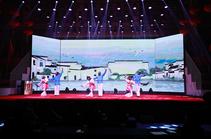 在“弦歌不辍育贤良”篇章中,中外学子联袂唱响戏曲《黄梅飘香》,这不仅是该校学子学习“新六艺”的成果汇报,更是青年学子传承中华优秀传统文化的具体实践。舞蹈《母亲是中华》和歌舞《万疆》表达了对祖国大好河山的热爱之情。“到祖国最需要的地方”对安医人来说从来不是一句口号,舞蹈《大爱无疆》、情景表演《到基层去》,还原了学校师生扎根基层、助力乡村振兴的感人事迹。节目以情动人,如汩汩清泉流入心田,引发师生共鸣。