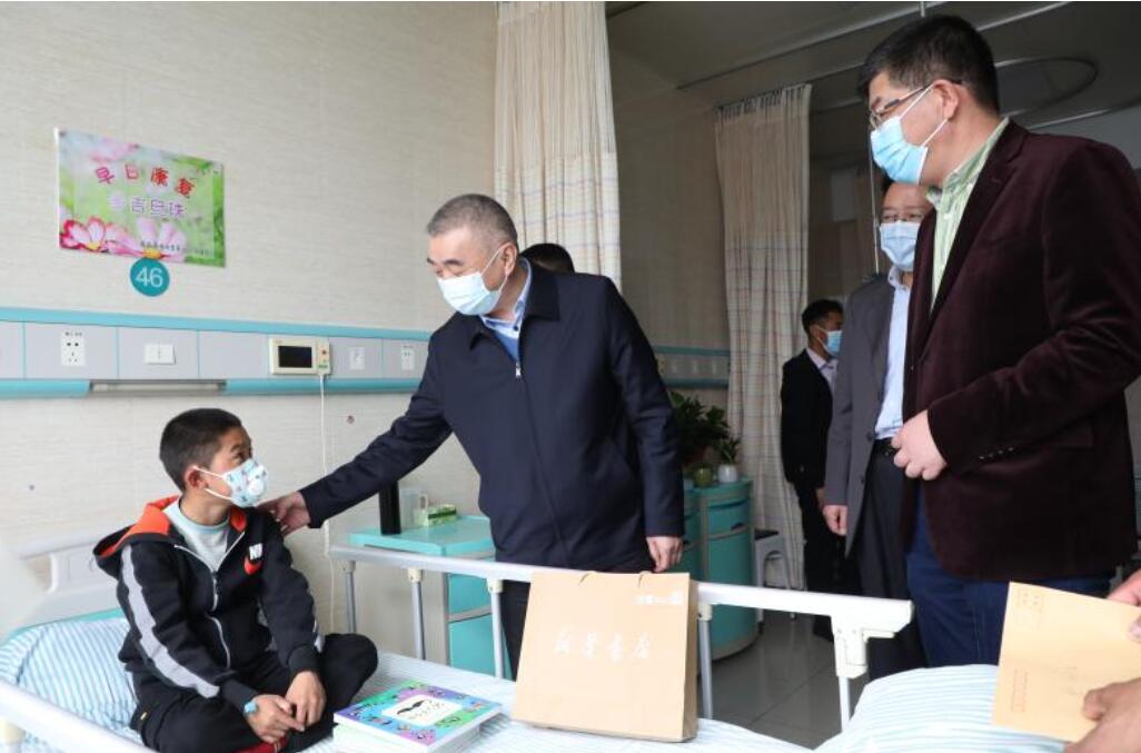 11月2日,省卫生健康委党组书记刘同柱赴安医大一附院高新院区看望慰问4名西藏山南市来皖治疗的先心病患儿,对患儿的康复表示祝贺,对医护人员的精心救护表示感谢,并与西藏患儿领队和安医大一附院及相关科室负责同志进行座谈。