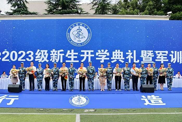 校徽是一所大学的标志和象征,诠释着学校的精神气质和文化底蕴。当天,10名本科生新生代表和10名研究生新生代表分别上台接受校徽授予;来自该校基础和临床教学一线的10名优秀教师代表登台,接受学生献花,该环节也向全校教师送上美好的祝愿。