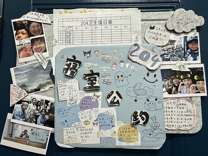 该院学子积极参与宿舍文化建设,各宿舍结合日常学习生活制定“寝室公约”,制作“卫生值日表”,明确各成员在寝室中的义务。一纸纸寝室“标准”“约定”逐步内化为青年学生的“文明公约”,为宿舍营造了温馨和谐的氛围。该院还在低年级学生中举办了“放飞青春,创先争优”宿舍美化大赛,聚焦宿舍环境、宿舍文化氛围、宿舍集体活动点,引导学生通过寝室装扮、门牌制作等方式,创造整洁舒适的宿舍环境,养成健康文明的生活方式,营造奋发向上的学习氛围,建立和谐友爱的人际关系,形成丰富活泼的宿舍文化。