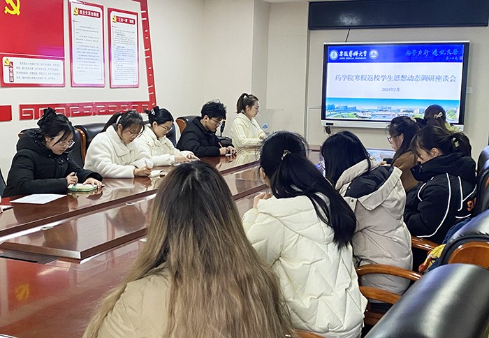 2月28日,药学院开展寒假返校学生思想调研会,本科生、研究生辅导员,学生代表以及院研究生会、学生会学生参加会议。