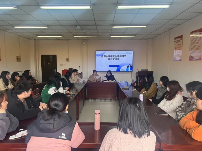 会上,该院科研与研究生管理办公室负责人详细介绍了应用心理专业硕士研究生的实习要求、实践基地和导师安排等,并围绕相关内容为同学们提出针对性建议。与会同学就专业实习相关问题积极提问交流。