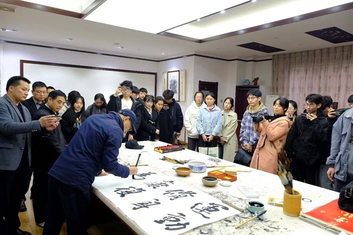 挂牌仪式后,吴雪为学生开展了《让艺术诉说生活》的主题讲座,并现场为学生进行书法示范。他希望青年学子能系统挖掘整理中华传统之美,使之融入日常生活,以潜移默化的方式陶冶情操,增强审美情趣,提升美学素养。同学们热情高涨,纷纷表示受益匪浅。