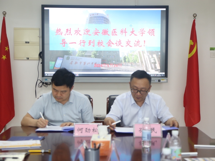 合肥第八中学有关负责人对我校代表来访表示热烈欢迎,感谢我校给予中学的肯定和认可,表示将共建良好合作机制,持续加强沟通交流,进一步促进大学教育与中学教育的良性互动,并将结合新高考政策,积极宣传鼓励该校毕业生报考我校。