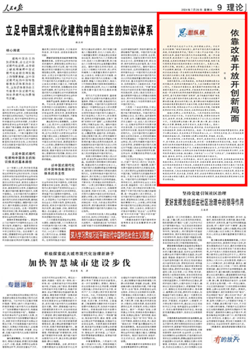 党的二十届三中全会胜利闭幕以来,学校党委第一时间传达学习党的二十届三中全会精神,研究部署学习宣传贯彻工作,在全校范围内迅速掀起学习宣传贯彻的热潮。7月26日,《人民日报》理论版刊发我校党政办公室任嵩同志《依靠改革开放开创新局面》的理论文章。