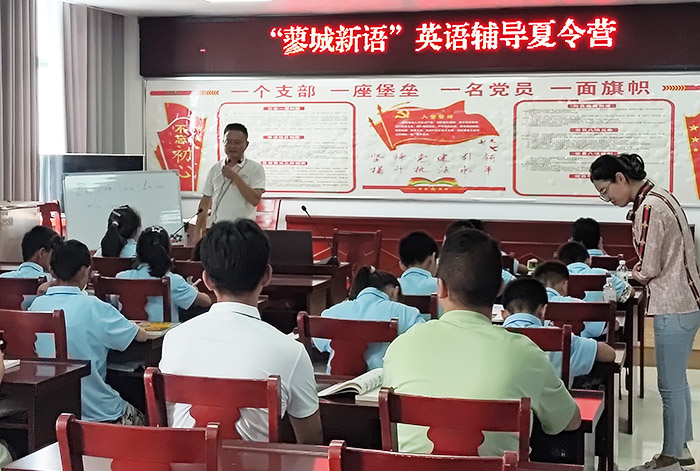 8月13日,我校驻霍邱县新店镇黄泊渡村和城关镇泽沟村定点帮扶工作队组织开展以“蓼城新语”为主题的夏令营活动,为村内小学生提供英语辅导。