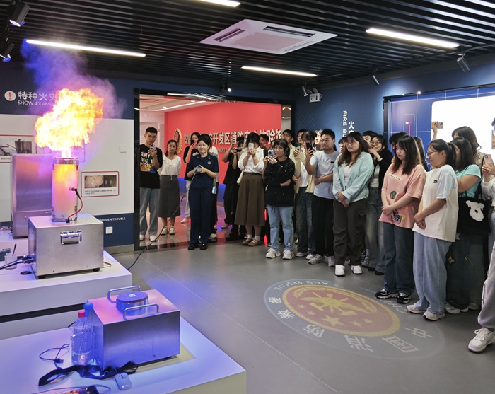 消防安全体验馆由基础知识学习区、模拟灭火实训区、疏散逃生自救区等三大区域组成,连贯模拟了发生火灾到疏散逃生的全过程。在宣传员带领下,同学们通过爆炸演示、VR体验等项目,了解了火灾带来的惨烈情形;模拟灭火实训区,宣传员通过展示消防器材,让同学们进一步了解掌握火灾报警处置程序及各类灭火器具、火场逃生的操作方法。活动最后,宣传员通过还原火灾逃生场景开展逃生模拟,以逼真的火灾情景让同学们感受浓烟中逃生的艰难,也让大家在演练疏散过程中熟悉火灾逃生的步骤和注意事项,真正掌握逃生本领。