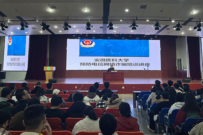“在日常生活中要时刻保持警惕,对于陌生链接和电话,必须保持高度警觉,坚决不轻易点击或盲目轻信。若存在疑问,可直接拨打96110进行咨询或报警,从而避免遭受不必要的经济损失。”南校区管委会、第二临床医学院联合举办的预防网络电信诈骗培训讲座上,莲花派出所的民警正向学生提出防范建议。该讲座也是南校区“反诈识诈”系列宣传教育活动的重要内容之一。