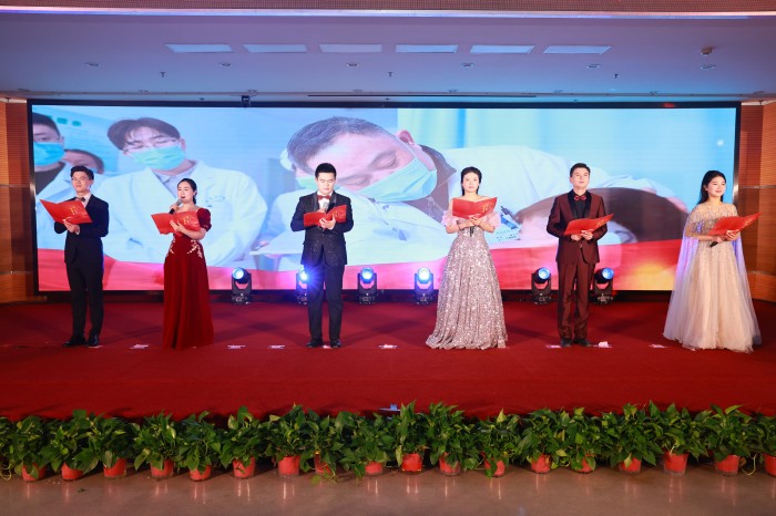 大会对血液内科及儿科儿童血液肿瘤专科、呼吸与危重症医学等41个年度先进集体,丁碧青等187位年度先进个人予以荣誉表彰。院党委书记周典作新春致辞,参会院领导向全院广大师生医护员工集体拜年,向大家致以新春佳节的问候和祝福。
