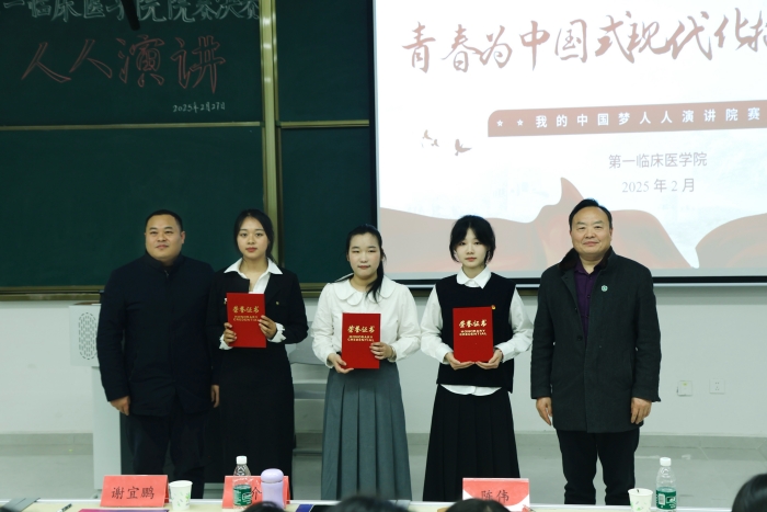 2月27日,第一临床医学院在新医科中心(新校区)举办“我的中国梦——青春为中国式现代化挺膺担当”人人演讲院级决赛。校宣传部常务副部长、新闻中心主任单永强,马克思主义学院党委书记谢宜鹏,校离退休教职工党委副书记黄介梅和校团委副书记陈伟应邀担任评委。第一临床医学院党委副书记、学生党总支书记李琮,学生党总支副书记高晓妹出席活动,与200余名师生共同见证2024级新生的“青春宣言”。