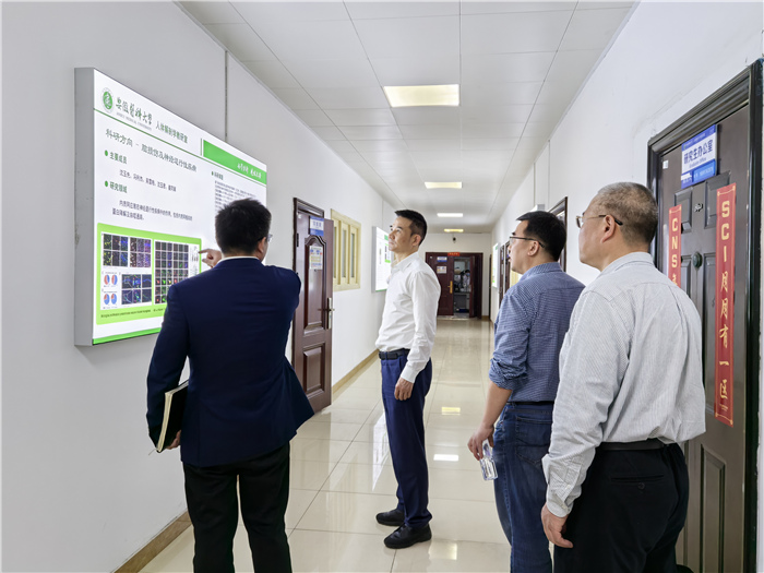 调研中,王琦实地走访了学校东楼、国家健康和疾病人脑组织资源库安医大分库、安徽省红十字会遗体(器官)捐献中心安医大接收站,详细了解人体解剖学实验教学区脑库实验操作区。