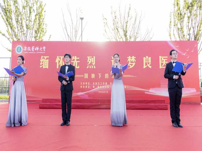 4月14日清晨,学校“缅怀先烈 逐梦良医——国旗下的演讲”主题教育活动在新医科中心(新校区)体育场举行。