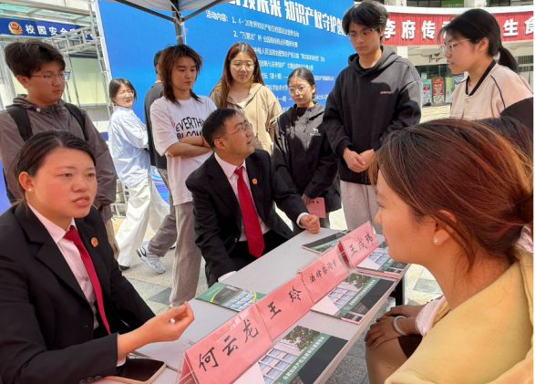 在南校区活动现场,来自合肥市中级人民法院合肥知识产权法庭的3名法官,以及法学院知识产权系师生,向广大师生发放宣传材料,传播知识产权文化理念,普及知识产权知识,倡导尊重知识产权、保护知识产权的意识,并解答有关知识产权法律咨询,引起广大师生对人工智能时代知识产权创新、运用与保护的热议,增强了大家对知识产权重要性和知识产权强国建设紧迫性的认识和理解。