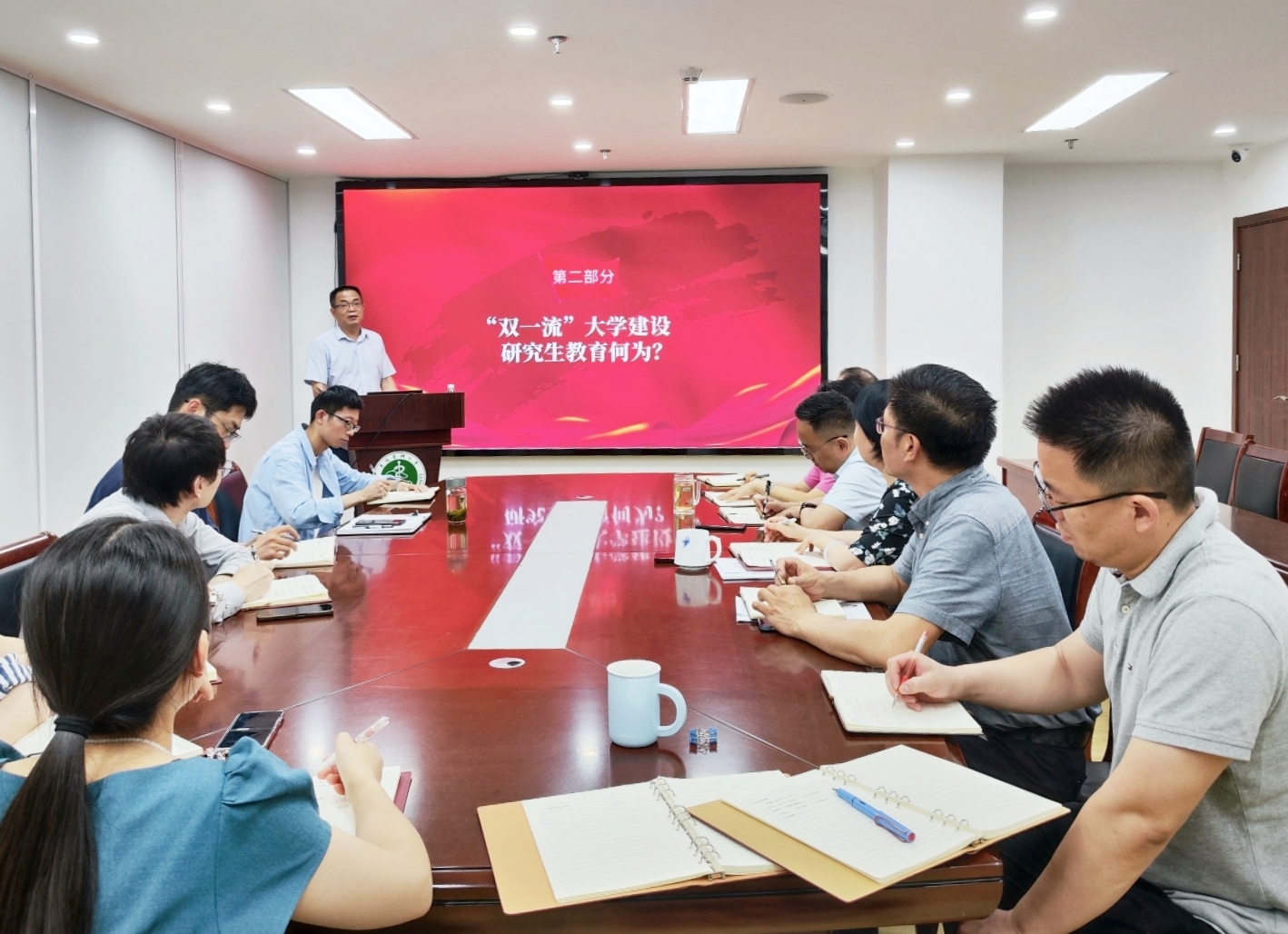6月5日,校党委常委、副校长文育锋以“贯彻落实校第九次党代会精神,奋力推动研究生教育高质量发展”为题,为研究生工作部党支部党员讲授专题党课。