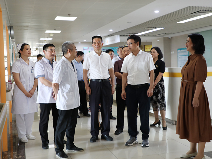 9月5日下午,省医保局党组书记、局长吴振宇率队到第一附属医院调研。省医保局党组成员、副局长汪和平及相关处室(单位)负责人参加调研。校党委书记王琦,副校长洪静芳,一附院党委副书记、院长孙倍成等陪同调研并参加座谈。